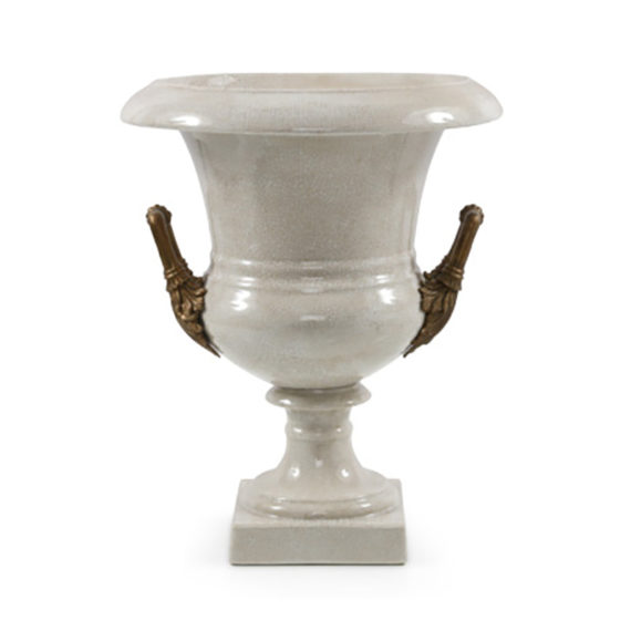 Introduce this splendid and elegant cup shaped planter into the home. The Cup Planter is made from beautiful porcelain, with a regal shape and the addition of elegant brass handles. This regal style planter is ideal for displaying an arrangement of beautiful blooms or fresh foliage for a splash of greenery anywhere in the home.
